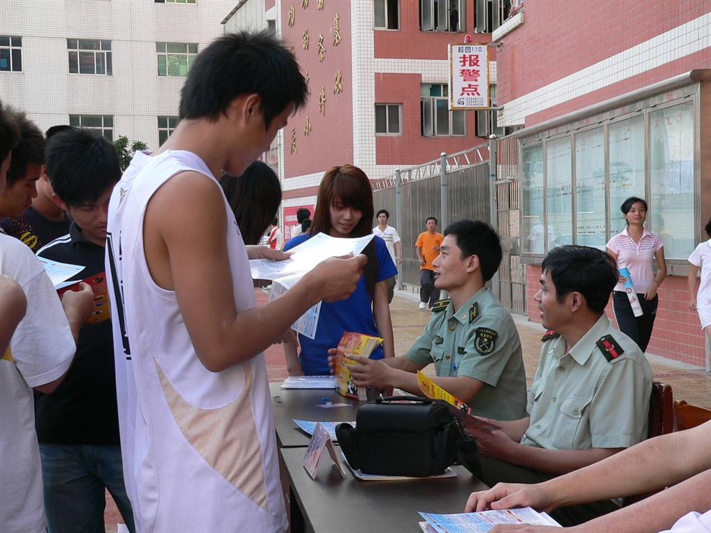 10月22日下午,我校举行2009年冬季征兵咨询活动。丰泽区人武部政委张青阳、区征兵办工作人员及我校征兵办主任高池碰出席了咨询会。他们热情、耐心地为前来咨询的同学们宣传、解答今年冬季征兵的新政策。现场气氛热烈...