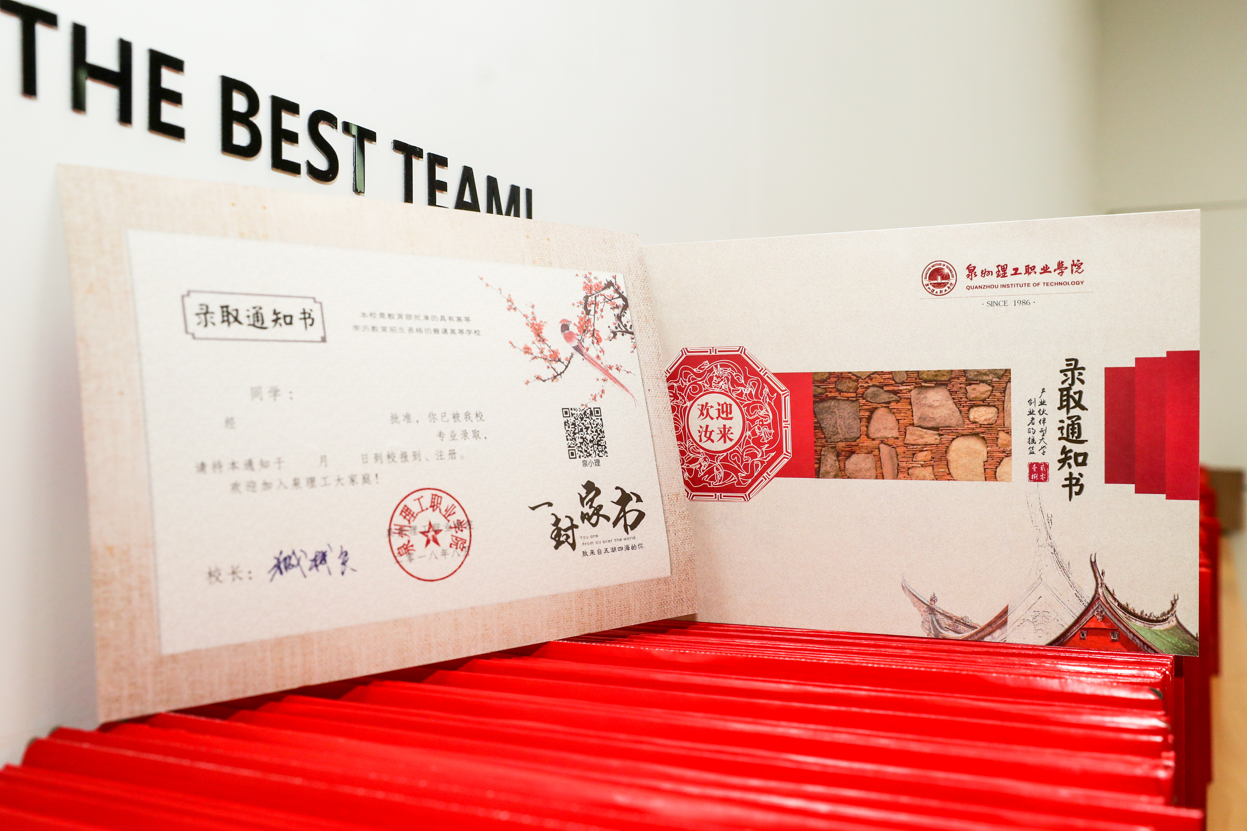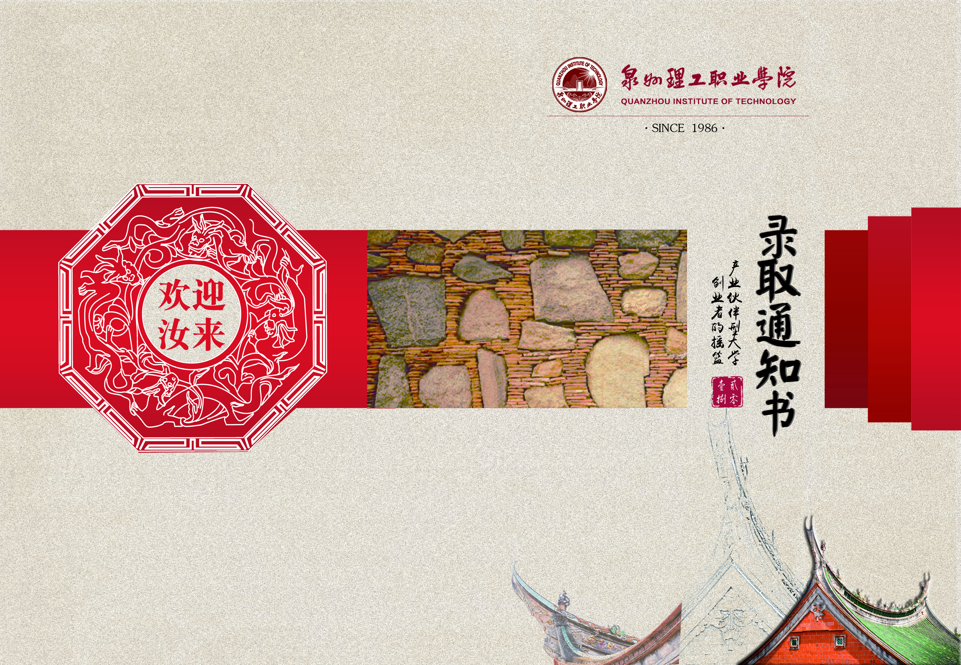 本次录取通知书以闽南元素为设计题材,今年是改革开放四十周年,践行晋江经验十五周年,所用元素皆源自于晋江本土文化。欢迎汝(Li)来:这是一句地道的闽南方言,我们热情好客,海纳百川,欢迎全国各地的学子成为新理工人。