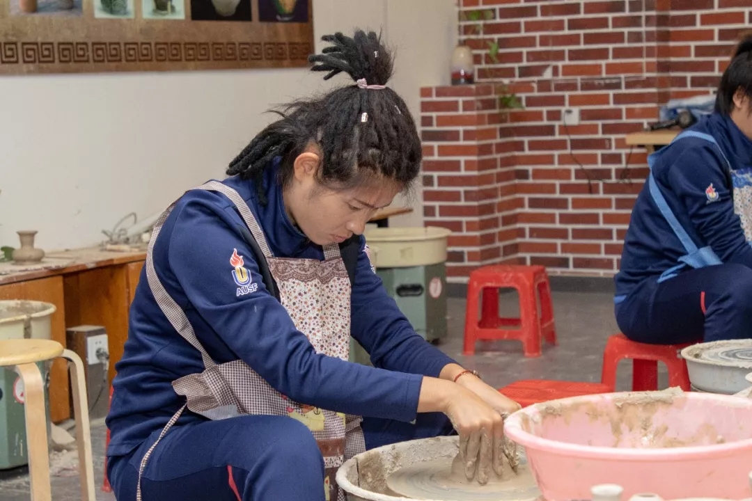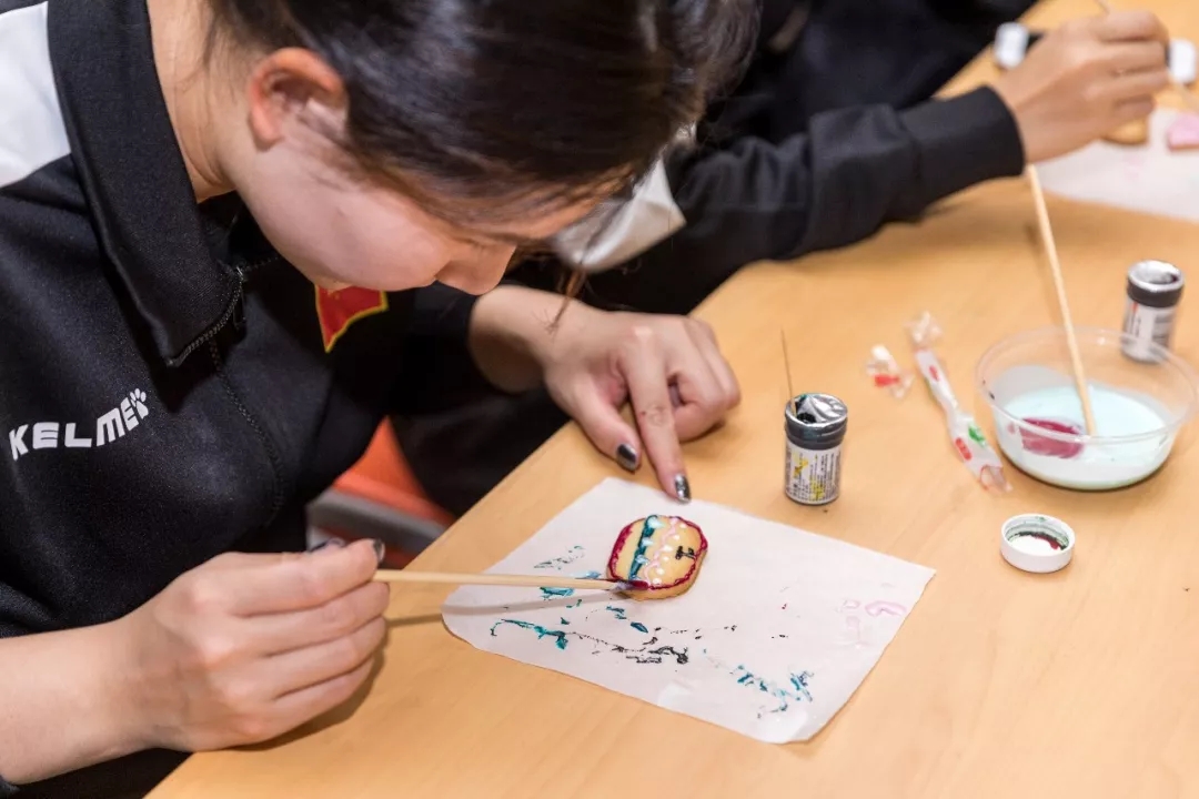 手绘面具、沙画、染布、陶瓷......中华文化的魅力让各国各地区的球员们痴迷不已,大家用自己天马行空的创意产生一件件充满传统文化色彩的作品。很多球员几乎每天都参加,还会拍照留念,发给家乡的亲人和朋友们欣赏。