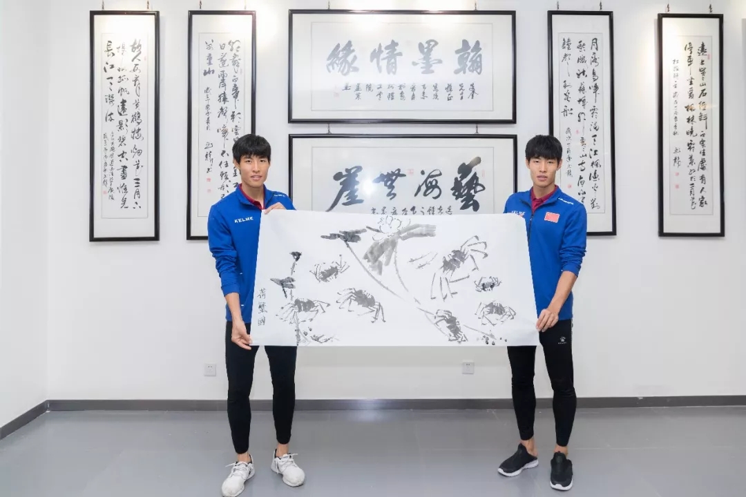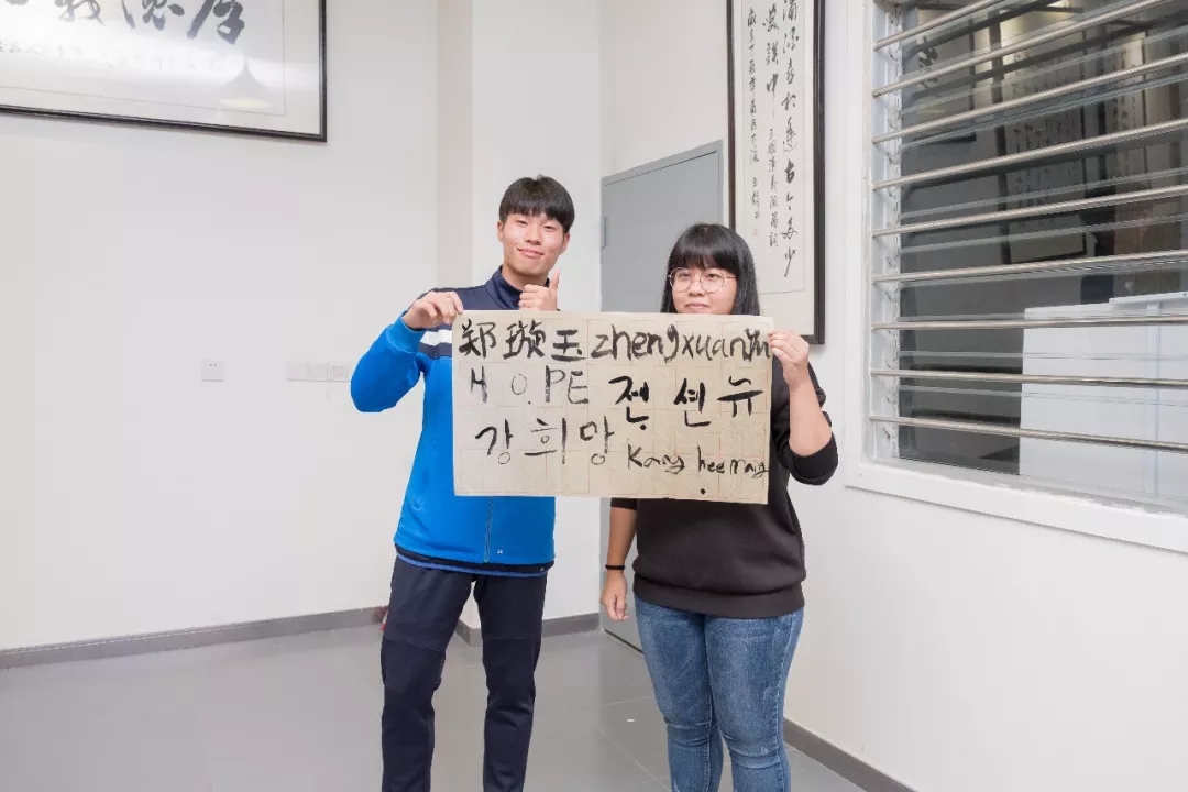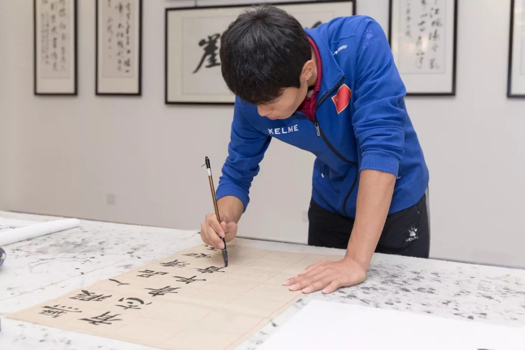 在书画工坊,外国球员拿起毛笔,在纸上一笔一划模仿,虽然对书法不太了解,但还是抵挡不住球员们的热情。韩国球员江希望很喜欢中国书法,纸上写满了中韩之间友谊,他要将作品带回国,和国内的小伙伴一起分享。