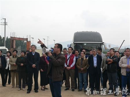 访问团一行分别察看了正在建设中的学生宿舍楼及食堂等建筑,并听取了庄文瑞副校长关于学校目前的建设情况和今后发展规划的介绍。