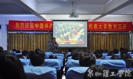 泉州理工学院在泉州校区思恩楼一楼会议室、电视厅、 3A 学术报告厅分别设立视频会场,学校党政领导、各系(部)领导及广大师生认真观看了大会盛况。仔细聆听胡锦涛总书记代表第十七届中央委员会所作的题为《坚定不移沿着中国特色社会主义道路前进 为全面建成小康社会而奋斗》的报告。