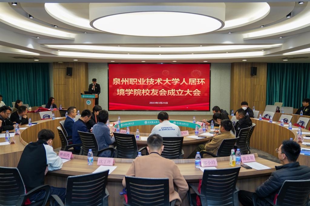 3月25日,泉州职业技术大学人居环境学院校友会成立大会在学校A301召开。我校创办人、董事长吴金营、副校长林文艺,人居环境学院院长吴铭辉、书记兼副院长张艺能,一善书院书记王秋玲、四实书院书记黄鸿,与校友总会等部门相关工作人员及校友出席会议。