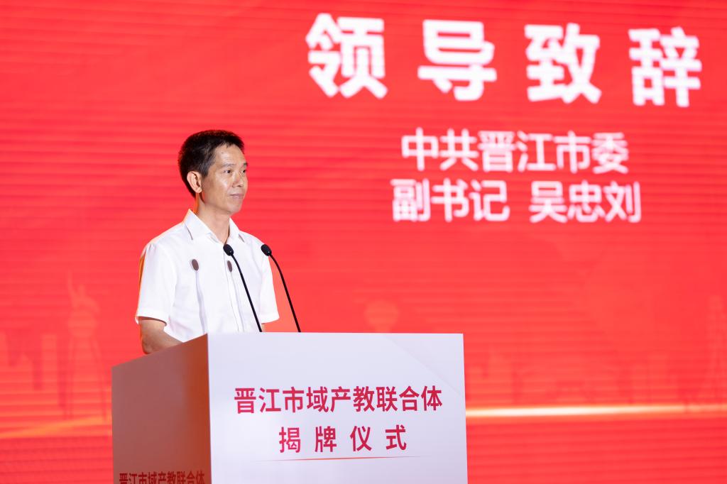 吴忠刘在致辞中指出,当前晋江正高举“晋江经验”旗帜,勇当新时代民营经济强省战略主力领军,全力建设中国民营经济强市,做强做大市域产教联合体是助推民营经济高质量发展的重要抓手。晋江市域产教联合体理事会及秘书处要强化统筹协调运营管理,推动园区、学校、科研机构、行业组织、企业更多地参与到联合体的建设中来,各发起单位要按照实体运作,奋勇当先,改革创新,大胆先行共建,共享服务发展这些总体要求,主动作为,开展协同攻关的技术成果转化,推动职业教育,服务晋江经济高质量发展,奋力打造市域产教联合体“晋江样板”,为创新发展“晋江经验”,建设中国民营经济强市做出更大的贡献。