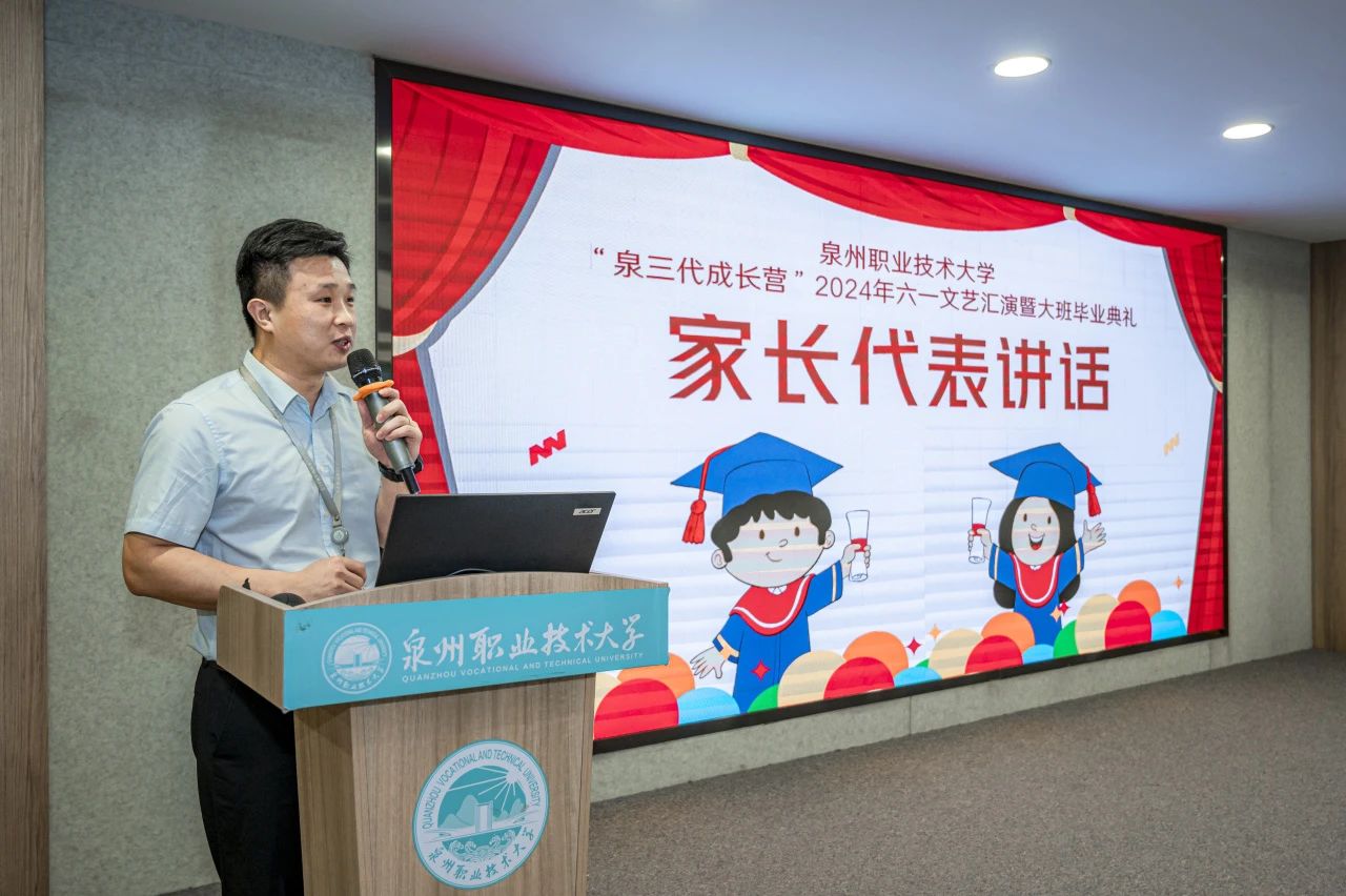 5月30日,泉三代成长营2024年六一文艺汇演暨大班毕业典礼举行。这场活动不仅是为了庆祝六一国际儿童节,这还是成长营大班小朋友们人生中第一个毕业典礼。活动中,孩子们化身小小歌唱家、舞蹈家、画家,用他们清脆的歌声、优雅的舞步和绚丽的画笔,献上一场充满“闽南味”的文艺表演。出席活动的有我校工会主席陈其生、副主席朱冰梅,教育学院院长张君,泉三代成长营负责人欧阳默涵,以及成长营小朋友与家长。