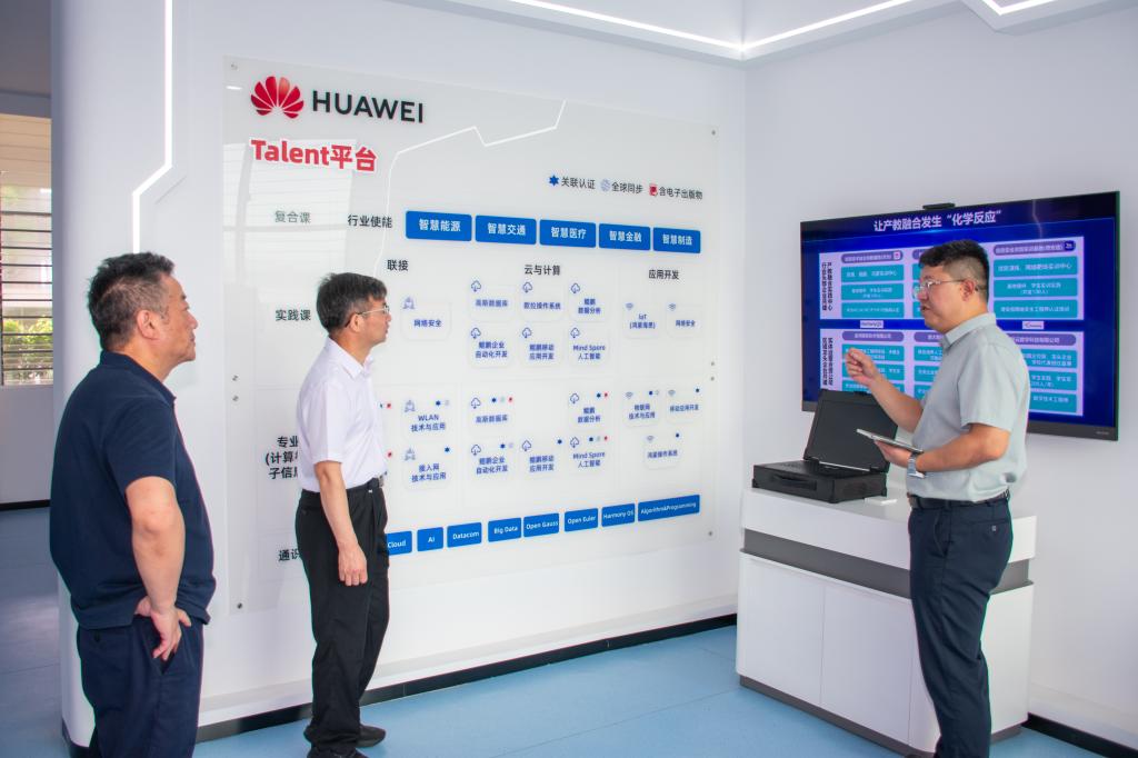汤宗礼一行先后参观了我校生态校园沙盘、校史馆、艺术设计展厅、直播基地、数智产教融合展厅、金鸿智联、行云新能源汽车产业学院等,重点了解学校在职业教育产教融合、专业建设、人才培养及产业学院共建等方面的实践成果。