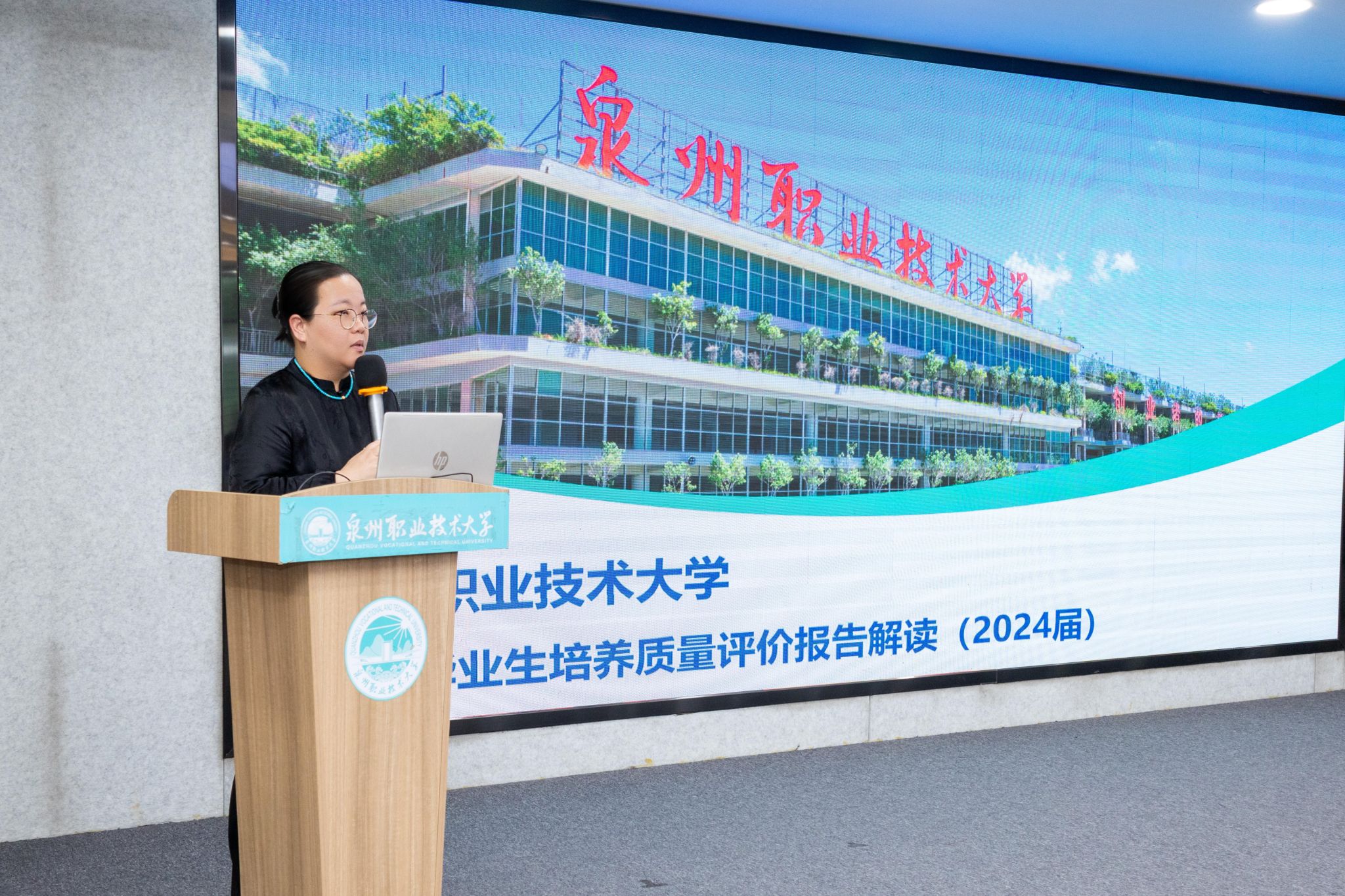 校长吴滨如在总结讲话中,将报告数据与学校发展实际紧密结合,并对关键环节作出了前瞻性工作部署。她指出,在数据采集方面,各学院应高度重视并高质量完成2025届毕业生调研,为持续改进提供坚实依据;在质量提升方面,要善于借鉴“双高”院校先进经验,持续强化专业内涵建设与教学精细化管理;在招生就业联动方面,要深入挖掘就业数据对生源优化与专业建设的反馈作用,实现人才培养与招生计划的良性互动;在专业结构优化方面,要主动适应区域产业发展趋势,进一步增强专业布局与省市重点产业需求的契合度;在产教融合深化方面,要重点推进与晋江等地区龙头企业的战略合作,开拓校企协同育人新局面。她强调,在学校迈向高质量发展的关键时期,全体教职员工应坚定信心、凝聚共识,以更加积极主动的姿态,识别发展机遇,勇于改革创新,协同发力,共同为推动学校实现内涵式、可持续发展贡献智慧与力量。