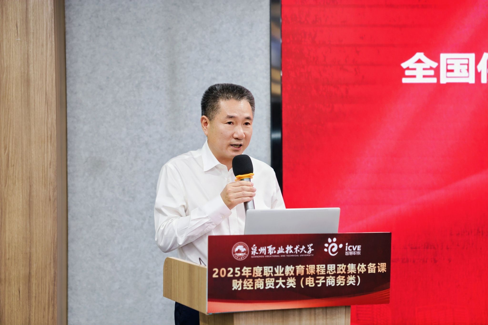 以“立德守正 融合赋能”为主题的2025年首场电子商务类专业课程思政集体备课活动,于10月20日在泉州晋江成功举办。本次活动由全国电子商务职业教育教学指导委员会(下称“全国电商行指委”)、全国供销合作职业教育教学指导委员会(下称“全国供销行指委”)联合主办,泉州职业技术大学承办。全国电商行指委常务副主任陆春阳,全国供销行指委副主任劳赐铭,泉州职业技术大学校长吴滨如出席活动并致辞。泉州职业技术大学副校长张建军主持活动。