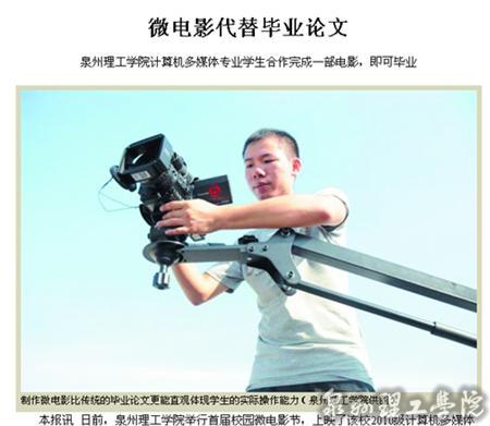 泉州晚报(9月19日):微电影代替毕业论文