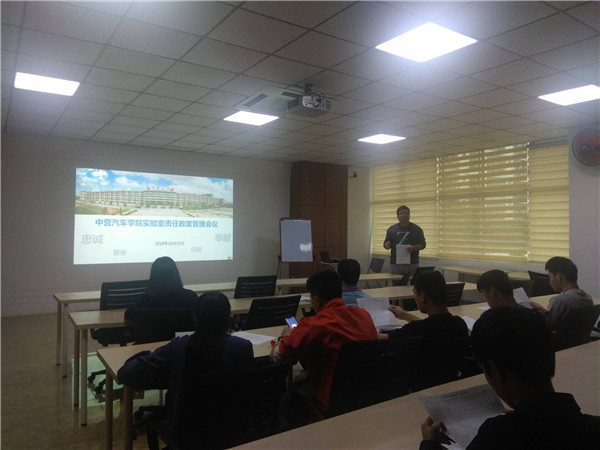 为了能更好的做好实验室管理服务教学,我院于10月15日下午17:00在主楼第二会议室召开了实验室管理会议,出席本次会议的有中营汽车学院院长陈其生、中营汽车学院书记欧阳春风、中营汽车学院实验室主任赖景湖、思政辅导员刘东毅以及各实验室负责人及各班级班主任。