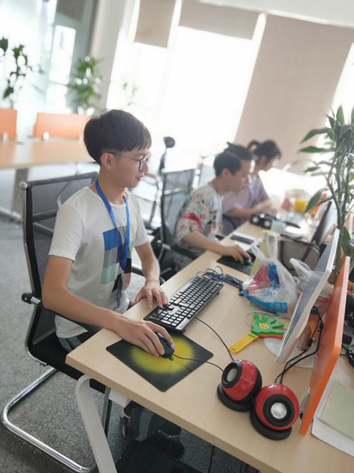 从事外贸实习岗位的学生正在认真地实践