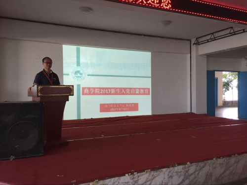 9月27日下午,商学院党总支在教学楼533教室,分专业举行了两场17级新生入党启蒙教育讲座,取得圆满成功。商学院党总支书记陈荣惠同志、商学院第一党支部书记游小玲、商学院第二党支部书记罗永珍以及17级辅导员徐静芳老师出席讲座。
