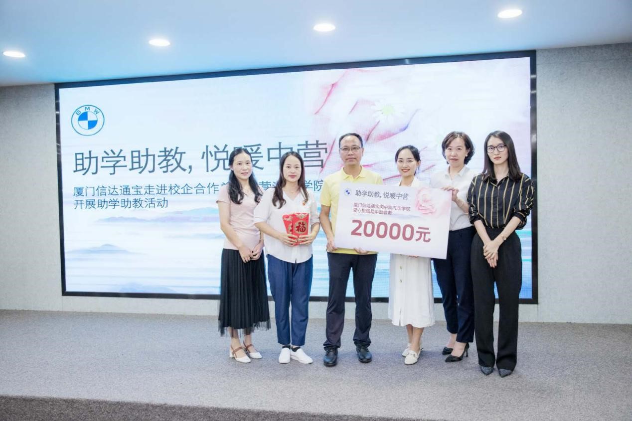 10月15日下午,一场厦门信达通宝“助学助教,悦暖中营”的爱心公益活动在A301国际会议厅举行。中营汽车学院院长陈其生、党支部书记兼副院长欧阳春风、学业辅导员付琴和部分专业教师和学生代表,以及信达国贸汽车党总支办公室专员张悦、厦门信达通宝行政经理卓晓玲、市场经理郑小妹等参加了此次活动。